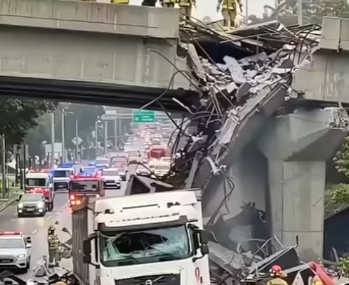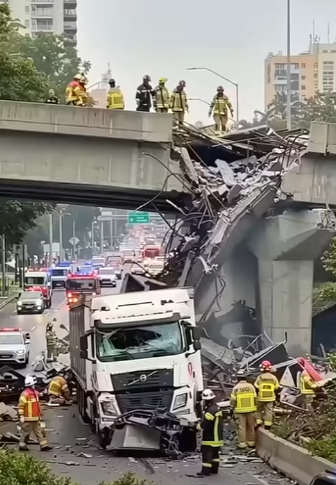 Sh0cking collision unfolded as a semi-truck slammed into a city overpass pillar. Knight Street closed southbound after truck hits overpass in Richmond, B.C.