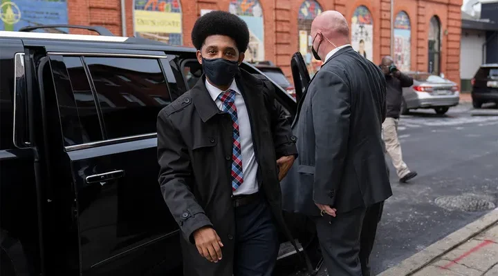 Mayor Brandon Scott exits his vehicle to pick up lunch Dec. 18 in Baltimore, Md. (Getty Images)